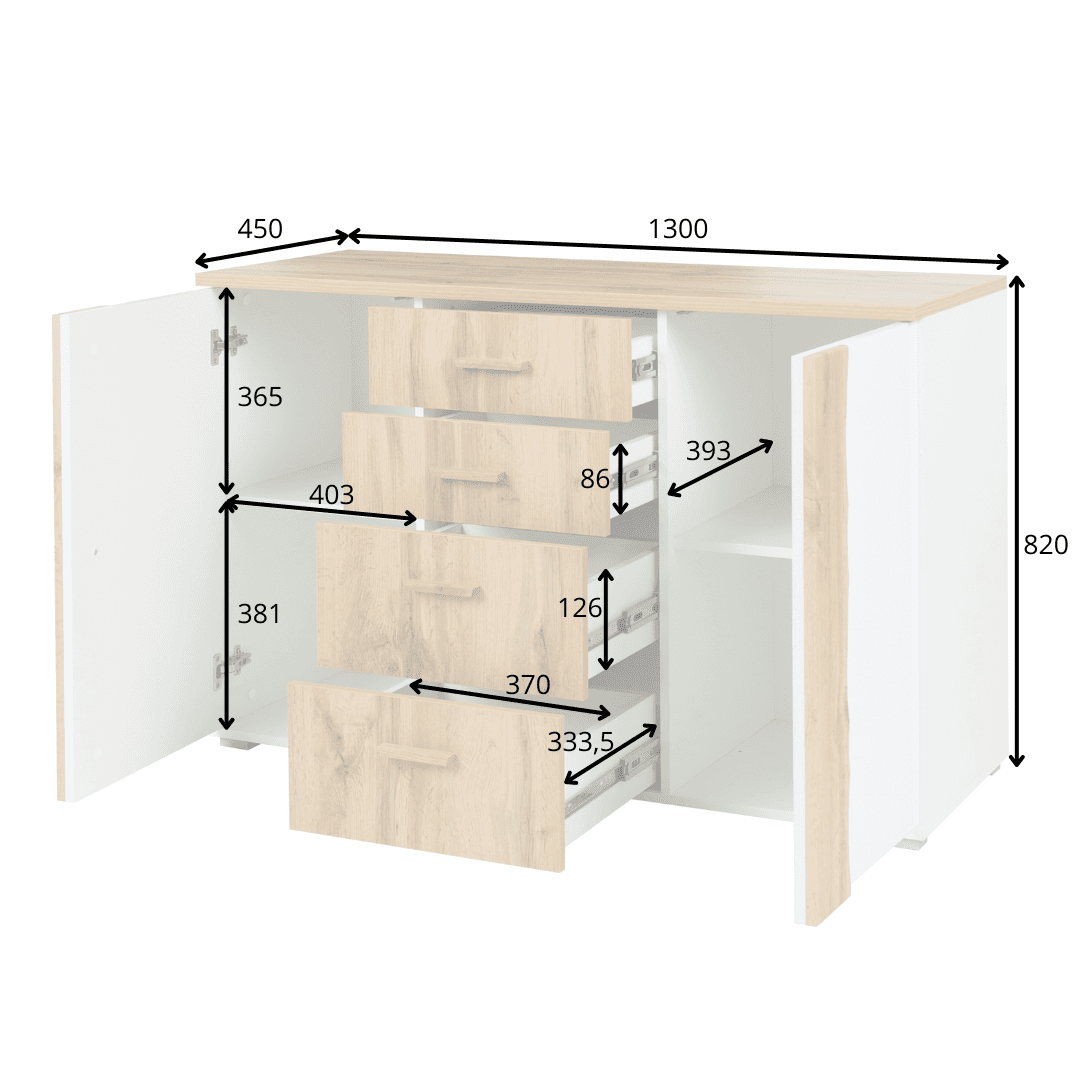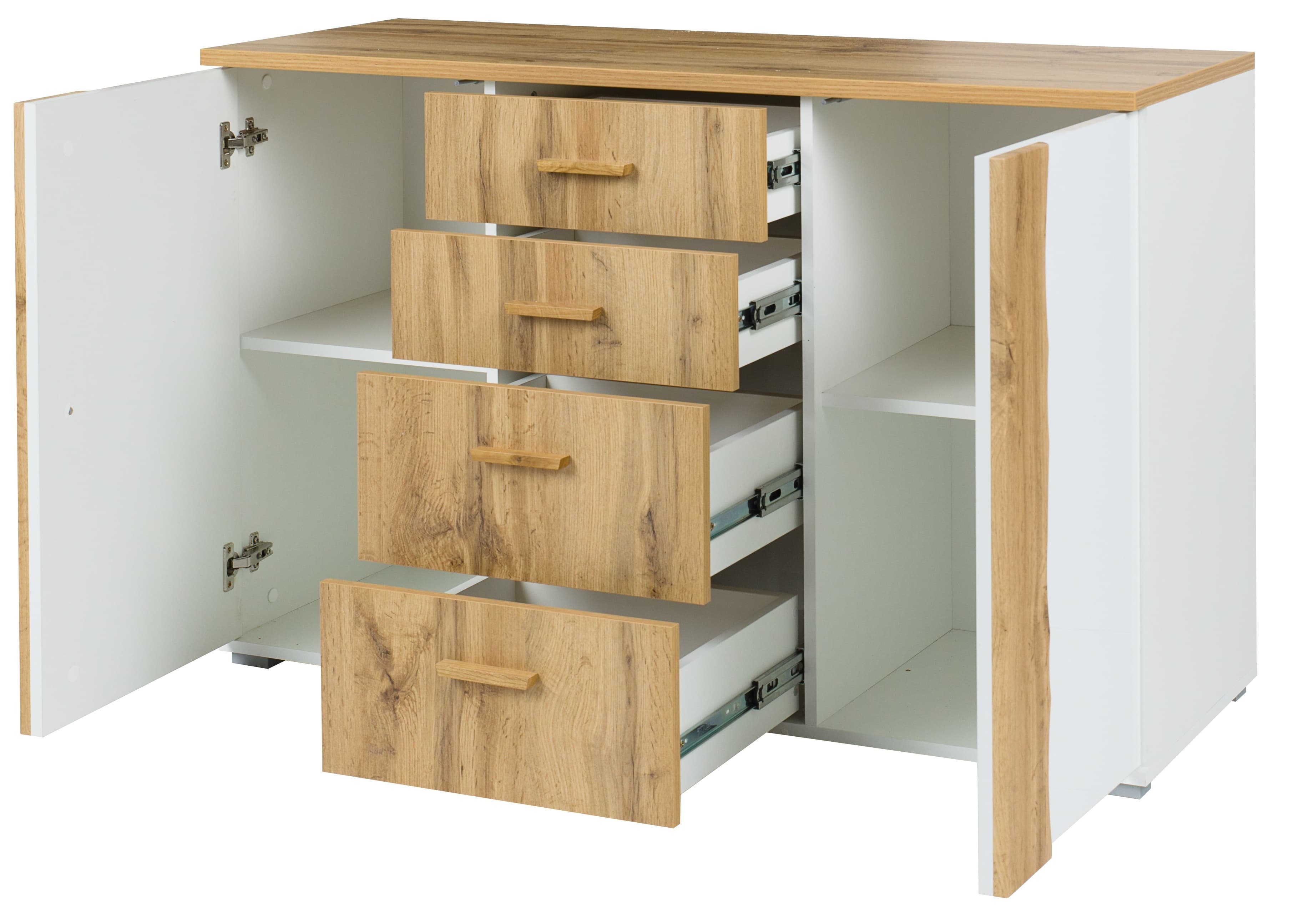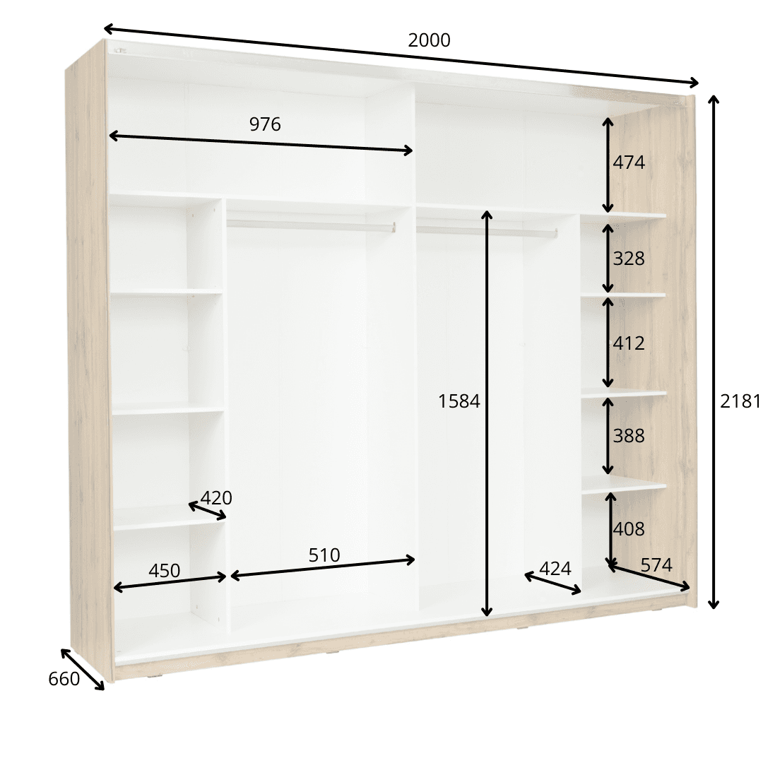 ARVENA Bedroom Set – White & Wotan Oak – Sliding Wardrobe